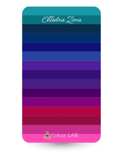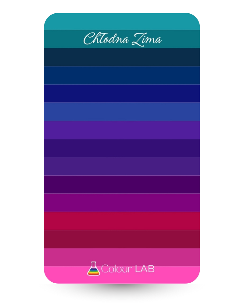 Kieszonkowa karta kolorów dla typu urody Chłodna Zima – do wyboru ubrań, dodatków i makijażu w chłodnej, czystej i wyrazistej palecie.